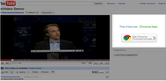 展示在精選視頻的右側和推薦視頻列表的上方。對于大型播放器,此類廣告可能會顯示在播放器下方。