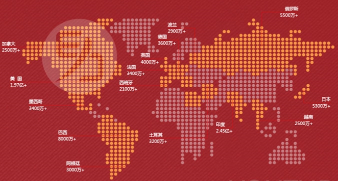 YouTube在全球36個國家和地區都有本地化的網站,適用的語言多達60個,每月有超過10億人訪問YouTube,觀看YouTube視頻的時間超過60億小時。