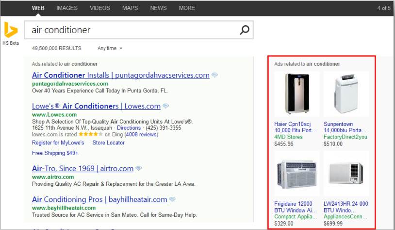 廣告可同時展示在必應(yīng)和雅虎搜索