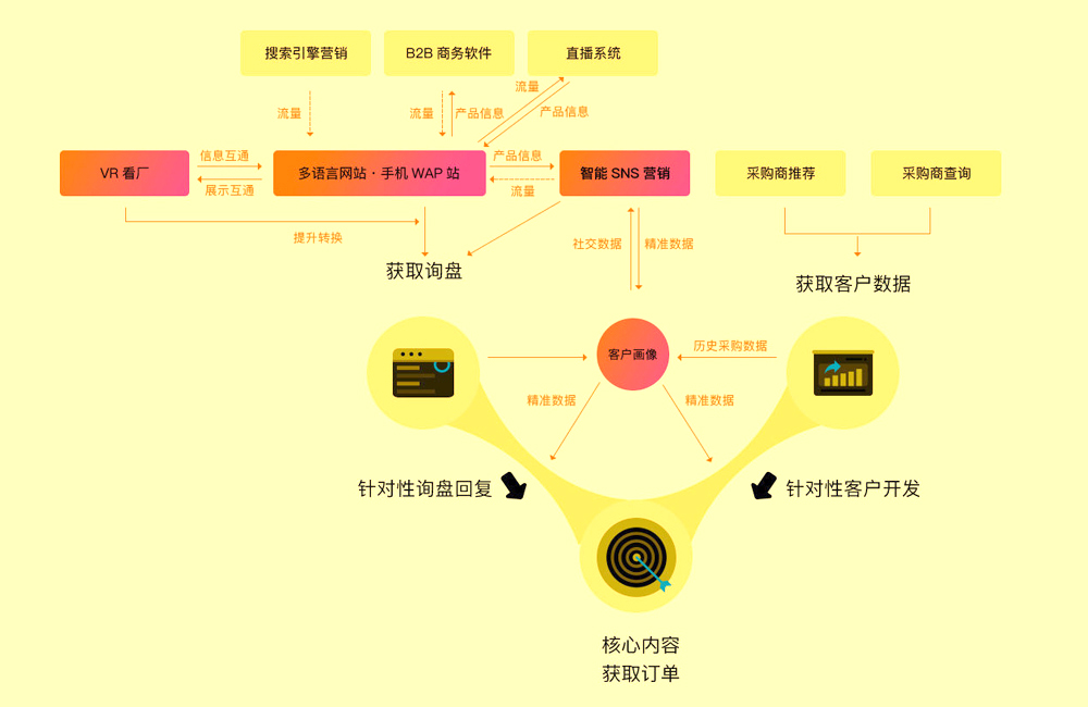 由Google首頁關鍵詞排名、Google Images 和 Google Video 排名、直播系統、客戶畫像、全球采購商推薦、全球采購商查詢、商務軟件、SNS營銷以及外貿實戰培訓組成的智能網絡營銷矩陣,最大限度地在一個系統內涵蓋全方位的網絡營銷渠道,真正實現了以大數據和云計算為基礎的智能網絡營銷。
